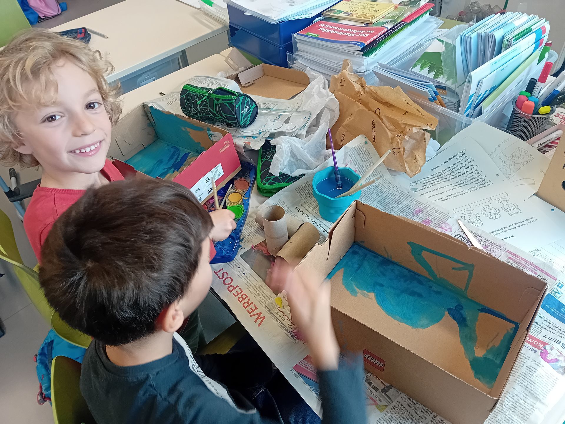 Alle Kinder konnten sich im Vorfeld für ein Wunschprojekt entscheiden, welches sie besonders interessiert hat. Die Projektgruppen haben sich lerngruppenübergreifend zusammen gesetzt. Es wurde gebastelt, gesungen, gesund Essen gekocht, Seife hergestellt, vielfältige Bewegung erlebt, ein Schulgarten mit Kräutern bepflanzt und eine Zeitung erstellt. Sogar ein Gemeinschaftsprojekt entstand, bei dem unsere Kinder ihre Handabdrücke auf Leinwände gedruckt haben.
